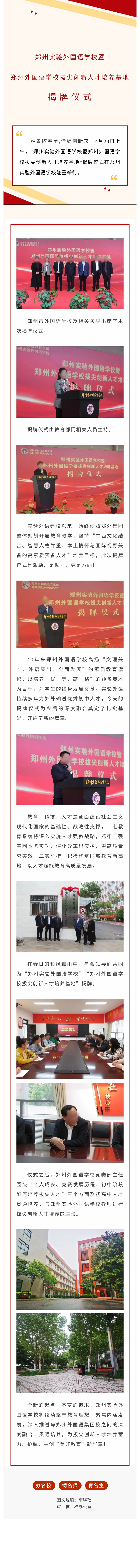 鄭州實驗外國語學校暨鄭州外國語學校拔尖創新人才培養基地揭牌儀式